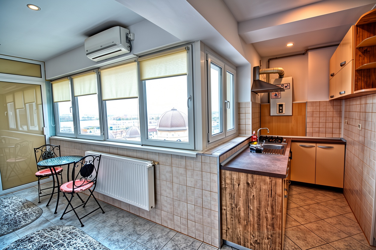 Baia este finisată cu faianță și gresie de calitate, dispune de aerisire eficientă și se prezintă într-o stare foarte bună. Încălzirea se realizează prin centrală proprie și calorifere, iar pentru confortul termic suplimentar, apartamentul beneficiază de aer condiționat. Blocul este izolat termic la exterior, sporind eficiența energetică.