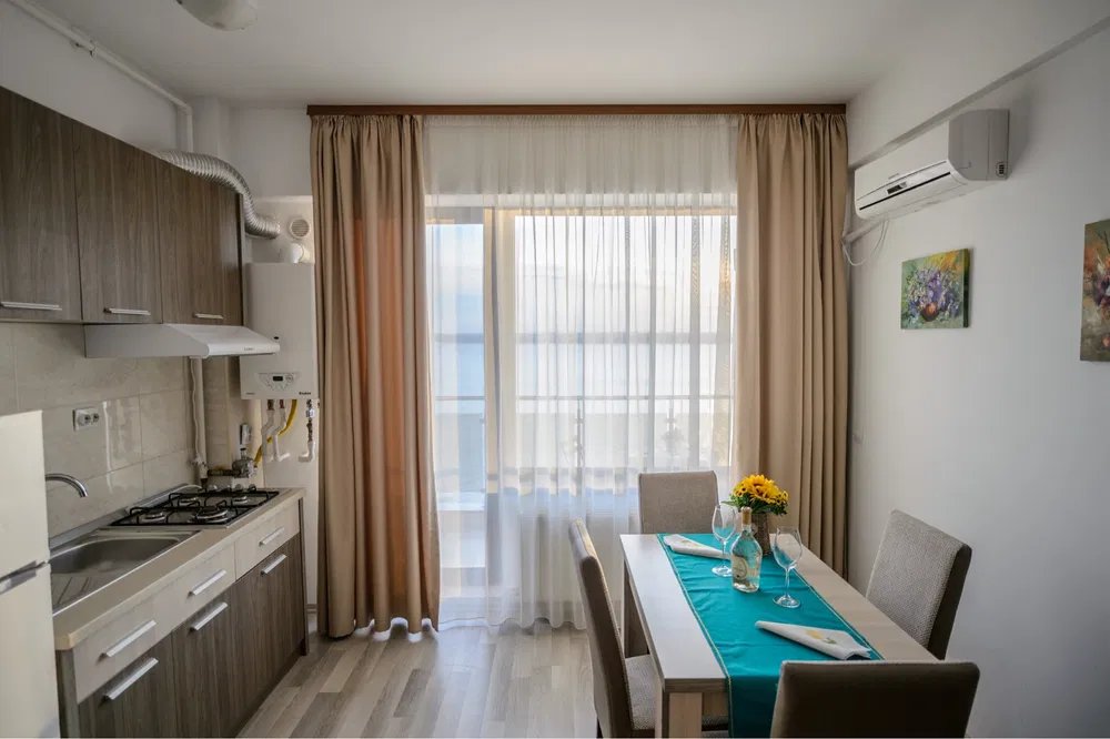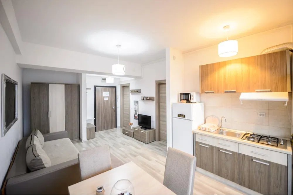 Va prezentam spre vanzare un apartament modern in suprafata de 47 mp, de 2 camere, situat in Mamaia Nord, la etajul 6 al unui bloc de 9 etaje cu lift , compartimentat astfel : living cu bucatarie open space, dormitor, grup sanitar, balcon. La interior, dispune de finisaje moderne, se vinde mobilat si utilat complet dupa cum se poate vedea in fotografii, dotat cu centrala pe gaze. Imobilul este pozitionat excelent, aproape de plaja, cluburi, restaurante, ceea ce il face ideal atat ca locuinta de vacanta cat si ca investitie. Toate actele sunt pregatite pentru vanzare. Va asteptam la vizionare ! Vizionarea proprietatii se face doar in baza Acordului De Vizionare !