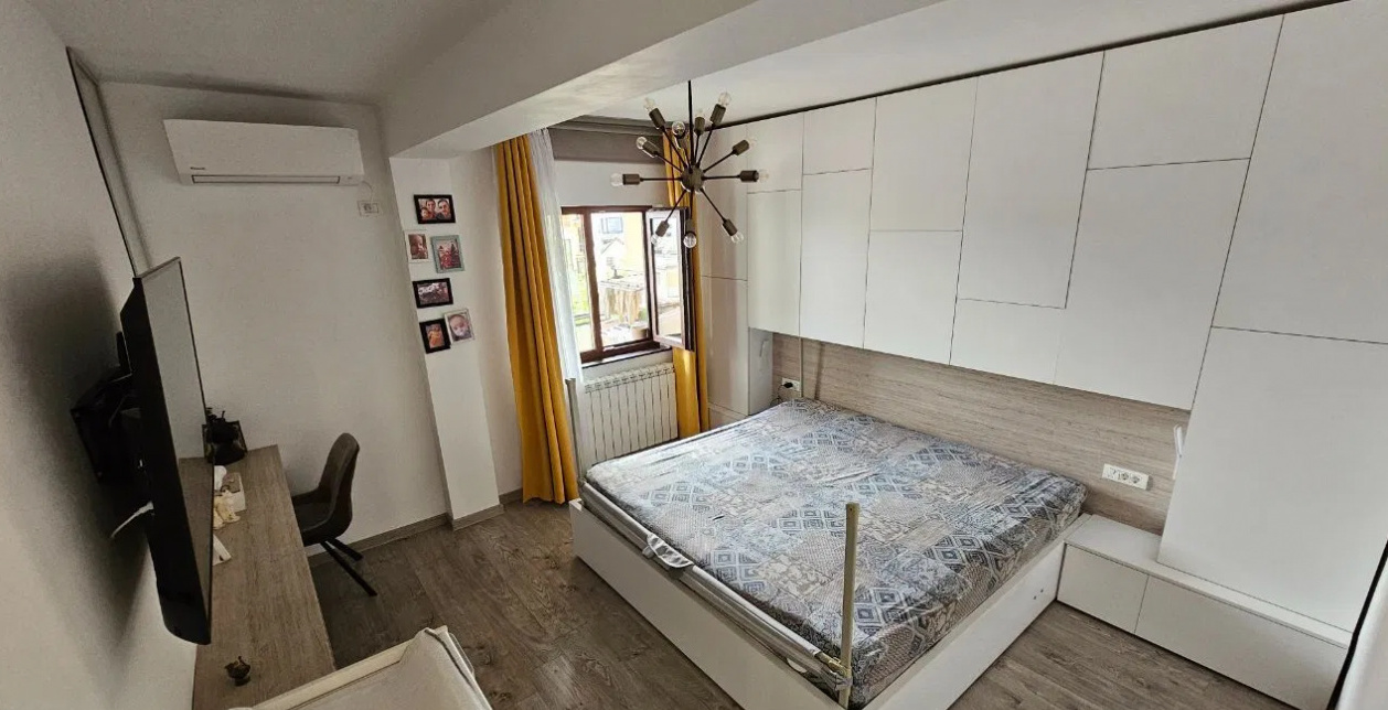 Vă prezentăm un apartament cu 2 camere, inteligent transformat în 3 camere separate, perfect compartimentat pentru confort și funcționalitate. Cu o suprafață utilă de 61,17 mp, la care se adaugă un balcon de 3,55 mp, locuința oferă spațiul ideal pentru o familie mică sau un cuplu care își dorește mai mult. Localizare: Zona Compozitori Etaj: 3/4 (etajul 4 este mansardă) Bloc fără lift Loc de parcare gratuit inclus în preț Apartamentul este gata de mutat, bine întreținut și se vinde complet mobilat și utilat, exact ca în prezentare. Dotări și îmbunătățiri premium: Tâmplărie PVC Salamander 7 camere, 3 foi de sticlă (4 Season + LowE) – confort termic și fonic superior Centrală termică pe gaz Vaillant ecoTec Pure 27kW + radiatoare din aluminiu 2 aparate aer condiționat inverter 12.000 BTU: Daikin Sensira (dormitor) + Vivax (sufragerie) Parchet melaminat 12 mm Mobilier realizat la comandă din MDF, inclusiv pat king size 2m x 2m Bucătărie separată, complet echipată (electrocasnice Bosch, Beko, Electrolux, Samsung) Instalație electrică ignifugă GEWISS, prize TV și internet trase prin pereți în fiecare cameră Ușă metalică la intrare Glafuri din piatră naturală interior/exterior Compartimentarea eficientă și finisajele atent alese transformă acest apartament într-o locuință primitoare, luminoasă și practică.